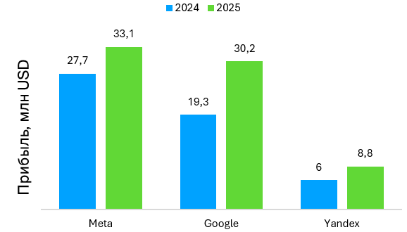 Оценить точный объем digital-рынка все еще проблематично из-за отсутствия единого измерителя. Однако показательными служат данные Государственного налогового комитета (ГНК): совокупная прибыль иностранных компаний, выступающих основными селлерами цифровой рекламы, выросла на 35%. (Примечание: если далее в оригинале идет график, здесь будет двоеточие).