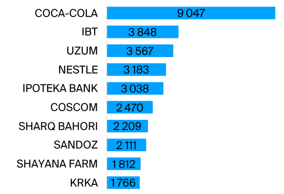 Особый интерес среди топ-игроков вызывает застройщик Sharq Bahori, а также большие объёмы финтех/телеком игроков Uzum, Ipoteka Bank, Ucell (Coscom).