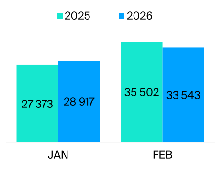 В целом, благодаря тому, что селлер ТВ-рекламы IMS не сильно увеличил цены в 2026 и ввёл дополнительные благоприятные условия для размещения, мы видим, что закуп рекламы в первые два месяца идёт хорошо – бренды закупили в январе больше wGRP, чем за аналогичный период прошлого года, а в феврале – незначительно меньше:
